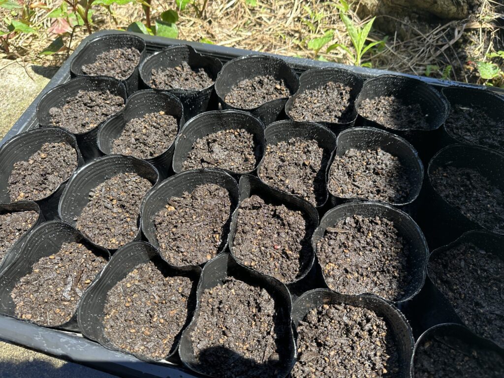 管理のしやすさを考え、今回はポリポットとセルトレイの両方を用意しました。