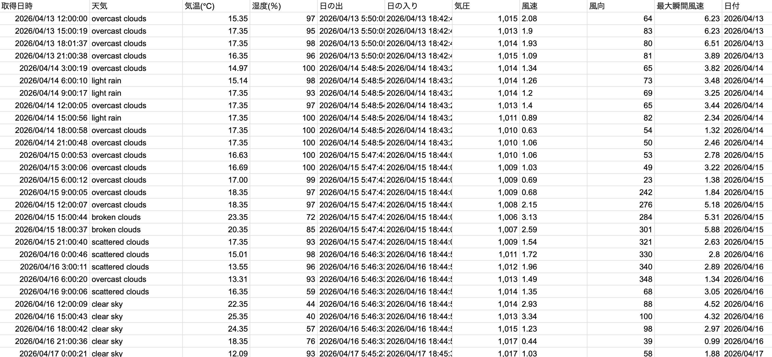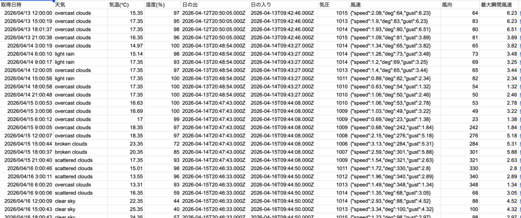 これで、スプレッドシートが更新されるたびに、ブログ上の気象ログも自動で最新の状態に書き換わるようになりました!